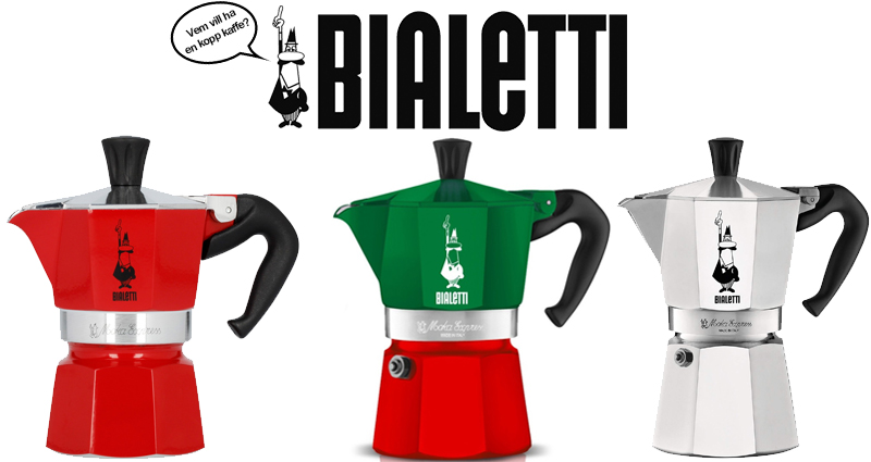 Bialetti - klassiska italienska kaffekokare, vi har många olika färger och storlekar. Vi har även packningar!